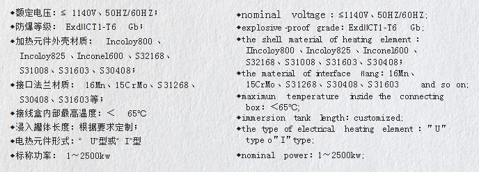 加熱器的發(fā)熱部分完全浸入介質(zhì)內(nèi),電氣接線盒在罐體、容器外。